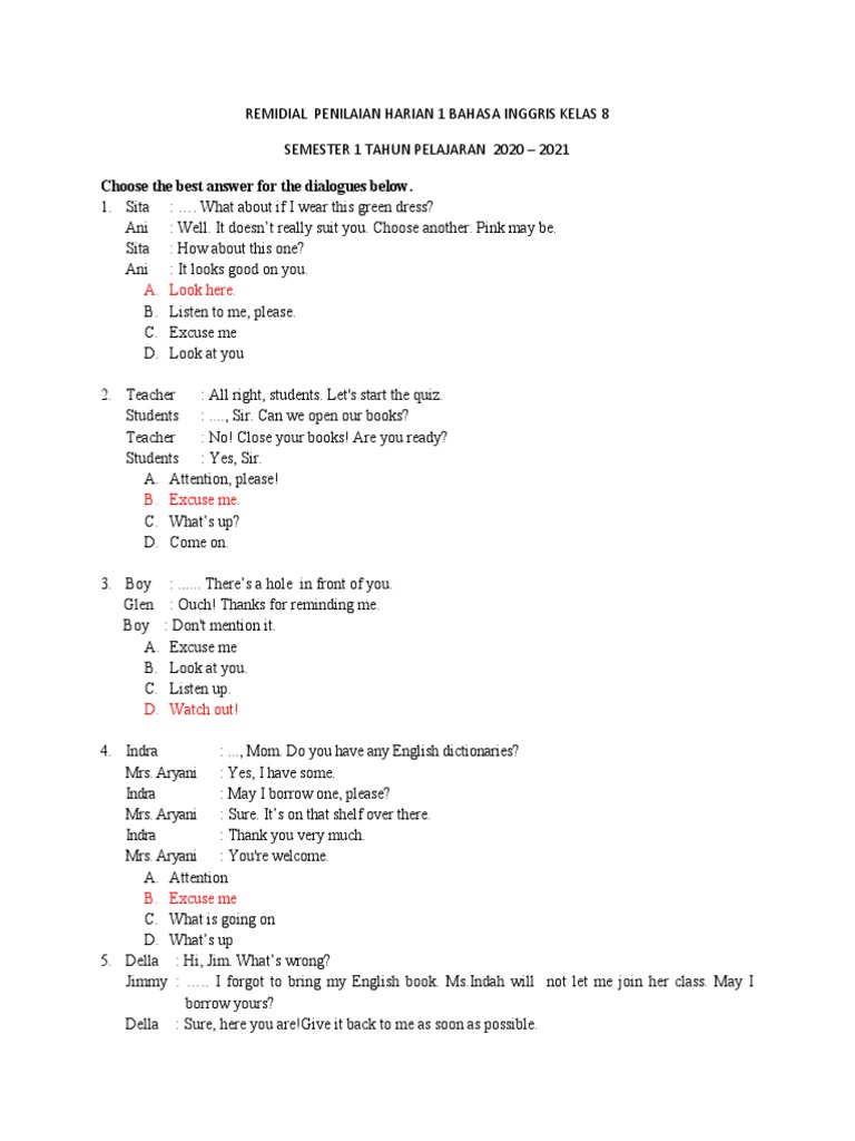 Kunci Jawaban Soal Latihan Ulangan Pas Uas Bahasa Inggris Kelas 9 Smp Mts Semester 1 Ganjil 2020 Halaman All Tribunpontianak Co Id